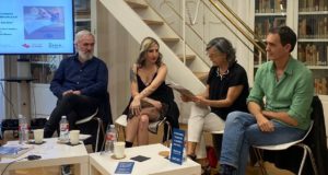 De izq. a dcha: Aurora Luque, Julia Barella y Estefanía Cabello, en la sala Valle-Inclán del Círculo de Bellas Artes (Madrid)